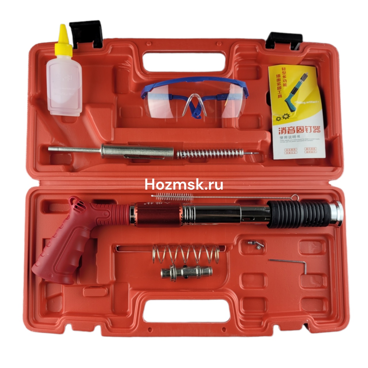 Встроеный глушитель делает работу комфортное. Прорезиненные вставки на рукояти обеспечивают надежное удержание инструмента и снижают отдачу от выстрела.